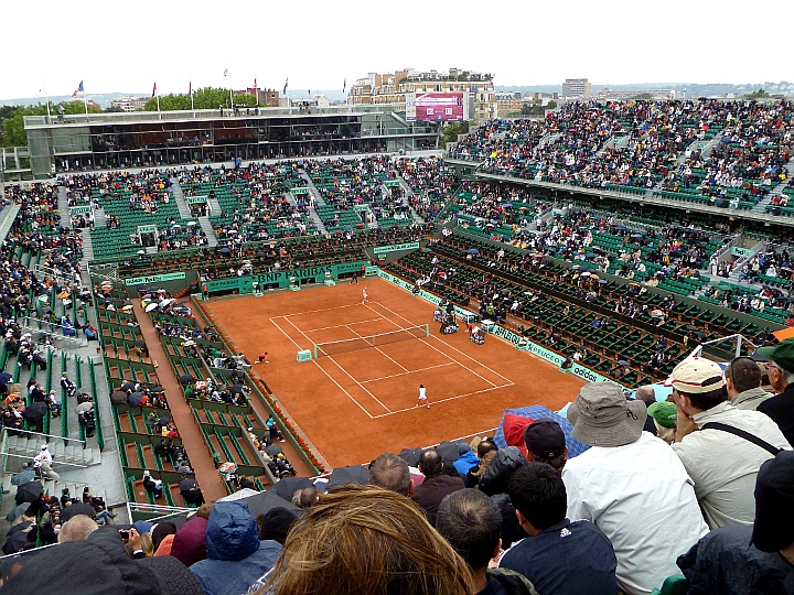 We arrived late in Paris, and the next day headed for Roland Garros with a day pass we got from the 2010 Roland Garros website. We settled into Court Three and watched our first French Open match. We stayed all day at Court Three and did not roam around the grounds because the tennis was too exciting. We picked up the ground pass while in Barcelona. In Nice, we discovered that by repeatedly accessing the Viagogo website it is possible to purchase returned French Open tickets at face value. Some new tickets would show up periodically at random times. If you were fast enough, you could click the “buy option” before someone else did and snag tickets for days at Roland Garros. Tickets came and went in a matter of seconds. We got lucky enough for four additional days of reserved seats, 2 in Langlen and 2 in Chatrier. Chatrier seats 15,000 and Lenglen 10,000. All good viewing, no nose bleed sections. An interesting note about exiting the stadiums is that ushers issue you an re-entry ticket that must be shown to re-enter the stadium. Many people leaving for the day will give their re-entry ticket to the first person who asks in the waiting crowd.