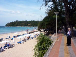 It was hard to believe that 10 days of doing nothing more than sitting under an umbrella on a hot sandy beach can go by so fast, but it did. We hope our QI is charged for 30 more years. This Kata beach reminded us, at first, of Key West Florida because its always so warm, there is little need for windows, doors or walls on the sidewalk establishments. That’s the only resemblance because the beaches are much larger and its hotter. Since its so hot, most beaches in Phuket are lined with umbrellas. I do not think it is possible to stay in the sun too long with without seeking shade.